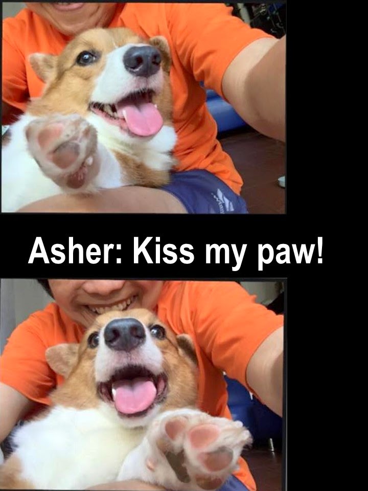 Just got a sticker made of a cartoon I drew of my oldest boy, Marky. He is a Singapore Special (aka local mongrel). The vet thinks he is a mixed Rhodesian Ridgeback (without the ridge). There isn't any cartoon sticker that can represent him...so I had to create it. His decal joined the 4 corgi decals my friend helped me to purchase from ebay. These represent Barn2, Clare, Asher (the noisy one) and Ari-el.